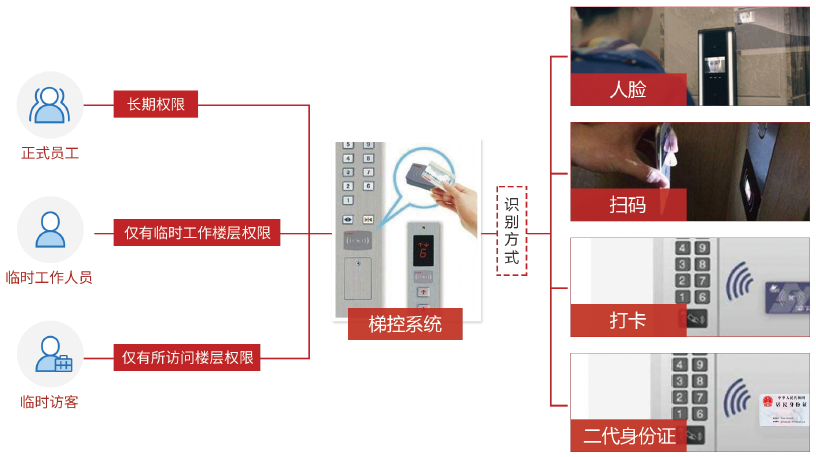 l 梯控系統識別方式包括:人臉識別、RFID識別、二代證識別、二維碼識別。